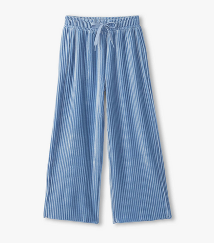 Cornflower Blue Pleated Wide Leg Velour Pant