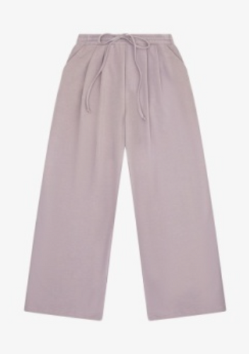 French Terry Pleated Wide Leg Pant In Cobblestone