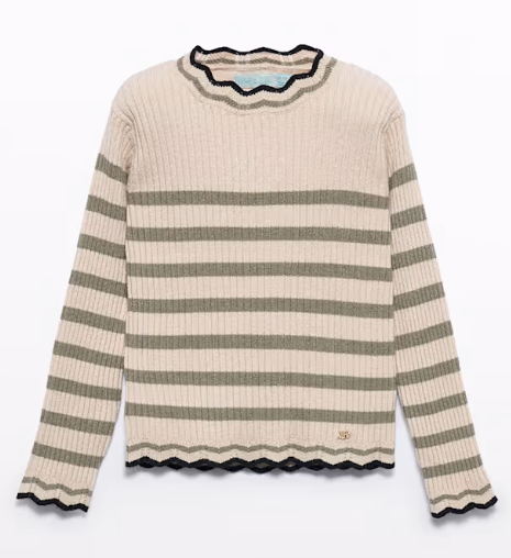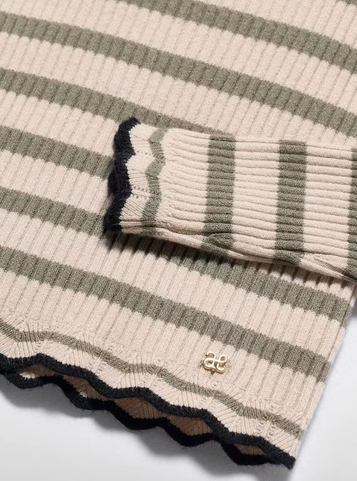 •detailed fabric/stitching at neckline, waist, and cuffs