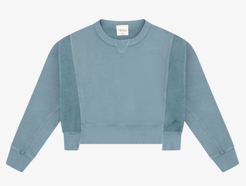 Cotton Fleece Reverse Insert Sweater In Indigo Storm