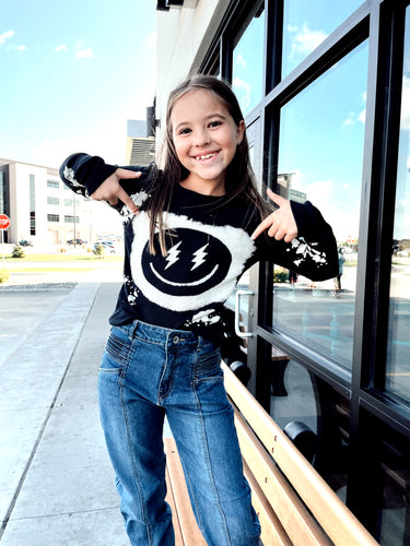 Black Bleach Smiley Face Top
