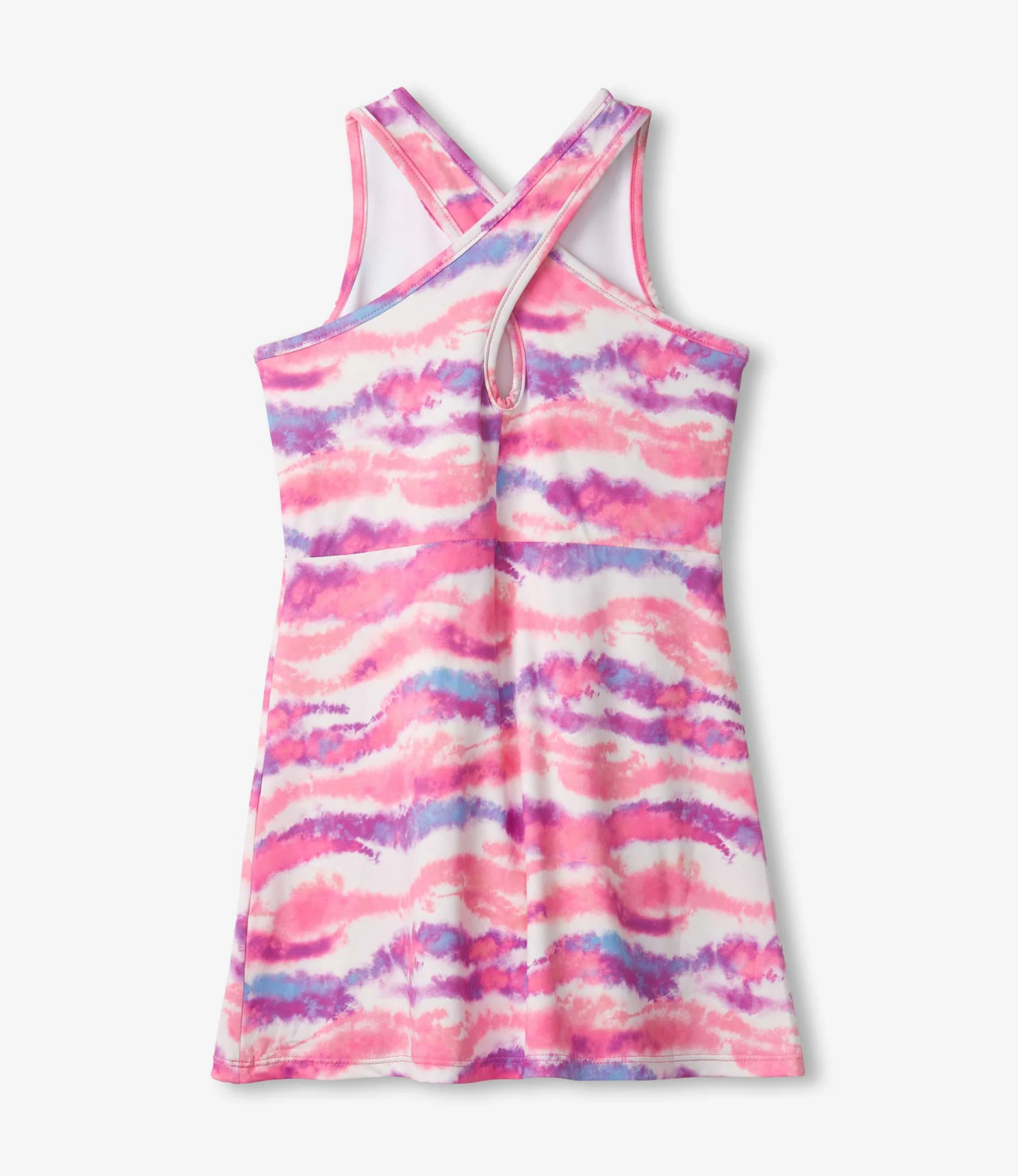 - Back straps criss cross over creating keyhole